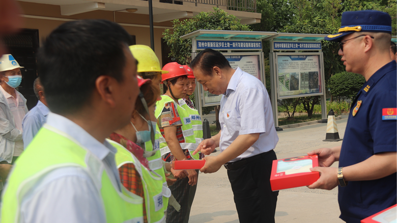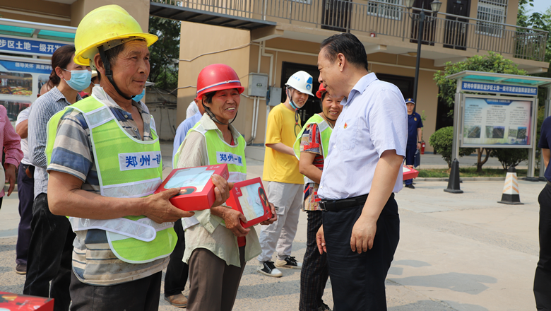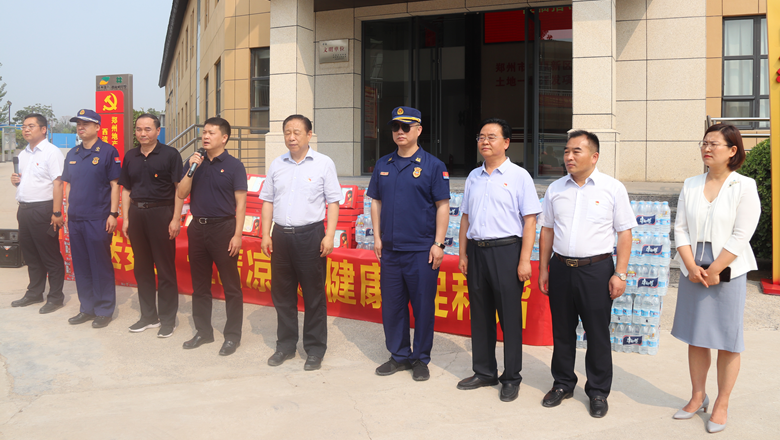 進(jìn)入夏季以來,持續(xù)出現(xiàn)的高溫天氣,給奮戰(zhàn)在建設(shè)一線的施工人員帶來嚴(yán)峻考驗(yàn),廣大職工不畏酷暑,堅(jiān)守崗位,辛勤付出。為做好廣大職工的防暑降溫工作,切實(shí)保護(hù)職工身體健康,6月11日,鄭州市總工會(huì)、鄭州市消防救援支隊(duì)到鄭州地產(chǎn)集團(tuán)西流湖公司中原新區(qū)土地一級開發(fā)項(xiàng)目指揮部開展主題為“送清涼、送安全、送健康、促和諧”的夏季送清涼活動(dòng)。鄭州市一級巡視員、市總工會(huì)黨組書記、主席趙新中,市消防救援支隊(duì)副支隊(duì)長、滅火救援指揮部部長李隆,市總工會(huì)副主席宋少丹,鄭州地產(chǎn)集團(tuán)有限公司監(jiān)事會(huì)主席、工會(huì)主席李靜波及西流湖公司黨支部書記、董事長、總經(jīng)理吉獻(xiàn)亮等領(lǐng)導(dǎo)出席活動(dòng)。活動(dòng)由西流湖公司副總經(jīng)理昌磊主持。
