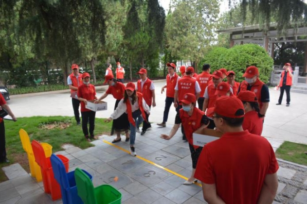 趣味垃圾分類活動。習(xí)總書記強調(diào):垃圾分類工作就是新時尚。在志愿者活動結(jié)束后,支部間開展了趣味垃圾分類競技比賽,比賽在一片歡樂和諧的氛圍中進行,比賽結(jié)束后,志愿服務(wù)隊員向參賽選手分發(fā)了垃圾分類宣傳頁和宣傳扇子,通過趣味垃圾分類活動向大家普及了垃圾分類知識。