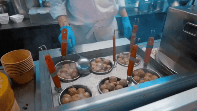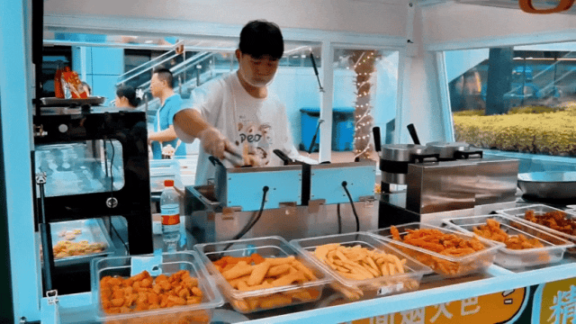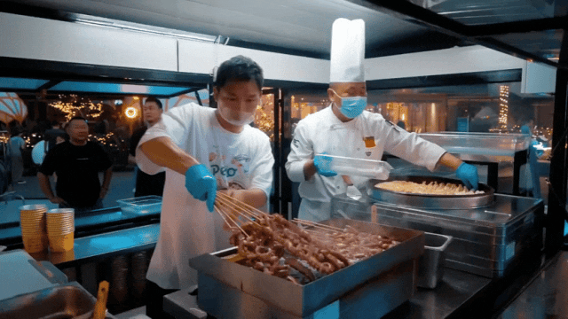 在夜市兩旁,章魚(yú)燒、特色酥肉、撈汁小海鮮、小龍蝦……十余家風(fēng)味小吃店一字排開(kāi),琳瑯滿(mǎn)目,吸引了不少消費(fèi)者駐足品嘗。