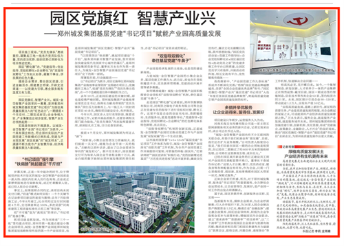 鄭州城發(fā)集團將持續(xù)加強黨建引領,創(chuàng)新機制、優(yōu)化資源,形成“黨建強企、政策惠企、金融助企、人才興企”的良好局面,推動“園區(qū)黨旗紅·智慧產業(yè)興”基層黨建“書記項目”走深走實,為鄭州高質量發(fā)展作出更大貢獻。