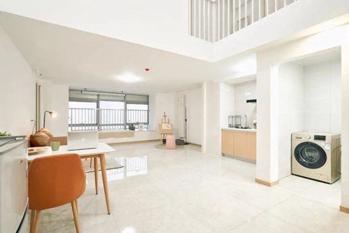 鄭州城發(fā)鼎盛美寓位于二七區(qū)嵩山南路東、柳江路南。本批次配租房屋共334套LOFT房源;其中38-60㎡的一室一廳戶型94套、61-75㎡的兩室一廳戶型240套,房屋租金價(jià)格區(qū)間為500-999元/月;物業(yè)費(fèi)2.6元/㎡/月,電費(fèi)0.75元/度,水費(fèi)5.95元/噸(水電費(fèi)暫按商業(yè)標(biāo)準(zhǔn)收?。T擁?xiàng)目2號(hào)樓1、2層為“人才之家”,配置有健身房、自習(xí)室、閱覽室等功能區(qū)域,精裝修設(shè)計(jì)交付,配備家具家電,拎包入住。
