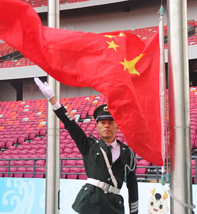 伴隨著慷慨激昂的義勇軍進(jìn)行曲,五星紅旗冉冉升起,鄭州奧體中心全體員工莊嚴(yán)的向國(guó)旗行注目禮,以最崇高的方式表達(dá)對(duì)祖國(guó)母親的敬愛之情。