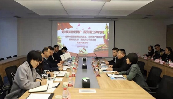 為深入學(xué)習(xí)貫徹黨的十九屆五中全會精神,進一步促進國資國企改革發(fā)展,不斷探索黨建與企業(yè)科學(xué)發(fā)展的有機融合,11月19日下午,鄭州市國資委第四黨支部與鄭州地產(chǎn)集團資產(chǎn)戰(zhàn)略黨支部、西流湖公司黨支部聯(lián)合開展支部共建活動。鄭州市國資委黨委委員、副主任劉學(xué)銀,副調(diào)研員范桂田,第四黨支部書記、財務(wù)監(jiān)管處處長范競,產(chǎn)權(quán)管理處處長常艷麗,鄭州地產(chǎn)集團資產(chǎn)戰(zhàn)略黨支部書記、資產(chǎn)運營部部長王樂琪,西流湖公司黨支部書記、董事長、總經(jīng)理吉獻亮,副總經(jīng)理李金光參加活動。