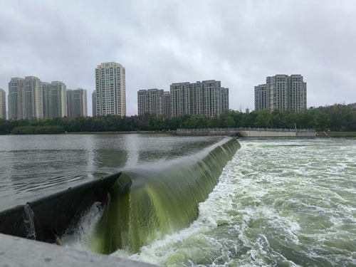為最大限度提升防洪能力,河南鄭地生態(tài)發(fā)展有限公司嚴(yán)格執(zhí)行市水利局調(diào)度指令,及時(shí)停止??谟S工程引水,并對(duì)賈魯河1號(hào)、3號(hào)、5號(hào)及6-10號(hào)壩攔河閘實(shí)施塌壩運(yùn)行,系統(tǒng)增加市區(qū)洪水調(diào)蓄空間,實(shí)現(xiàn)了工程間水資源聯(lián)合調(diào)度。