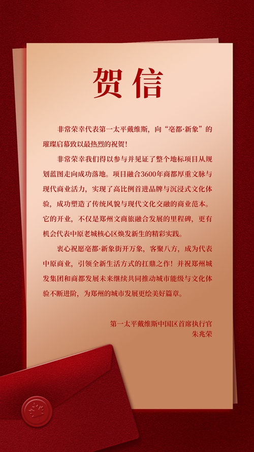 “亳都·新象”由城發(fā)集團投資建設,項目的成功開街,不僅是商業(yè)運營的勝利,更是城市文化與商業(yè)融合發(fā)展的典范。第一太平戴維斯中國區(qū)首席執(zhí)行官朱兆榮在賀詞中表示,“亳都·新象的開業(yè),不僅是鄭州文商旅融合發(fā)展的里程碑,更有機會代表中原老城核心區(qū)煥發(fā)新生的精彩實踐。”
