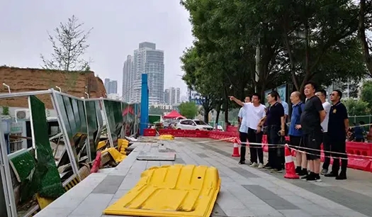 汛情緊急,快速應(yīng)對力保平安。公司黨支部書記、執(zhí)行董事、總經(jīng)理趙佳佳對于防汛工作作出工作部署,工程管理部即時啟動24小時項(xiàng)目值守,扎實(shí)做好暴雨防御、隱患排查、雨水倒灌、排水等各項(xiàng)工作,全力保障工程安全。7月22日,公司總經(jīng)理趙佳佳、副總經(jīng)理郭燦帶隊(duì)在健康城項(xiàng)目所有標(biāo)段進(jìn)行災(zāi)后安全隱患巡查。