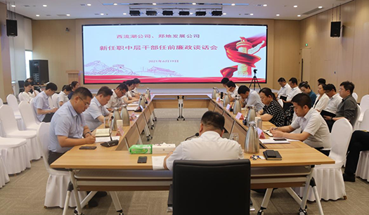 6月19日下午,西流湖公司、鄭地發(fā)展公司召開(kāi)新任中層干部任前廉政談話會(huì)。公司領(lǐng)導(dǎo)班子成員、中層正副職人員及新任職中層干部人員共計(jì)二十余人參加,會(huì)議由公司黨支部書(shū)記、董事長(zhǎng)、總經(jīng)理吉獻(xiàn)亮主持。會(huì)議要求新任中層干部要認(rèn)清定位、做好表率,要對(duì)下負(fù)責(zé)、嚴(yán)格管理,以強(qiáng)烈的事業(yè)心和主人翁姿態(tài),主動(dòng)扛大梁、挑重?fù)?dān)、負(fù)重責(zé)、做貢獻(xiàn);要敢于擔(dān)當(dāng)作為,勇于攻堅(jiān)克難,要以踏石留印、抓鐵有痕的勁頭理清思路、突出重點(diǎn)、轉(zhuǎn)變作風(fēng)、創(chuàng)新機(jī)制,以主動(dòng)擔(dān)當(dāng)、奮發(fā)有為的姿態(tài)扛起助力城市建設(shè)發(fā)展的大旗,為鄭州國(guó)家中心城市建設(shè)增光添彩。
