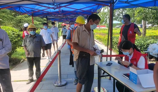 由于龍湖社區(qū)內(nèi)工地數(shù)量多,人員流動性大,檢測人群普遍年齡偏大,給檢測工作著實帶來一定難度。尤其是有一位工友,左腿受傷骨折,打著石膏拄著拐杖來做檢測,他沒有拿身份證且隨行人員都不會熟練操作手機掃碼,但在志愿者的引導(dǎo)下,從帶領(lǐng)他走愛心通道、到協(xié)助錄入信息、幫助他們?nèi)私仄亮舸嬉约白罱K完成檢測,志愿者認(rèn)真的工作態(tài)度得到了工友和社區(qū)工作者的高度贊揚。檢測期間,志愿小隊統(tǒng)一按照社區(qū)的調(diào)度安排,各司其職,專人專崗,一切行動聽指揮,做到了各環(huán)節(jié)專人負(fù)責(zé)和快速反饋,整體檢測工作快速有序的進(jìn)行,僅在15日一天,社區(qū)就完成了4000余人次的檢測。來自龍湖社區(qū)的居民表示,第四次核酸檢測相較于前幾次效率明顯提高且秩序良好,從最初的半個小時以上到現(xiàn)在的幾分鐘,這不僅是效率質(zhì)變,更是廣大一線工作人員的付出心血,大家都非常感謝他們。
