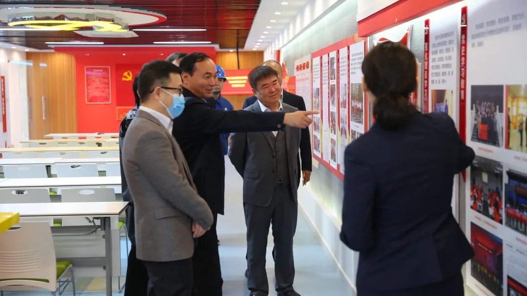 在鄭地投資公司黨支部省醫(yī)項目部,投資公司黨支部書記、董事長楚紀(jì)方詳細(xì)匯報了黨支部以黨建智慧“大腦”為依托,圍繞“紅色物聯(lián) 融通萬物”黨建特色品牌”,全力構(gòu)建“113N”黨建工作體系的特色做法。驗收組一行詳細(xì)觀摩了省醫(yī)項目“紅色物聯(lián) 融通萬物”黨建示范點創(chuàng)建觀摩展廳。張晟組長高度肯定了投資公司省醫(yī)項目、綠城廣場地下綜合開發(fā)等惠民項目在解決人民群眾“急難愁盼”問題中展現(xiàn)的責(zé)任擔(dān)當(dāng),強(qiáng)調(diào)要繼續(xù)堅持用黨的創(chuàng)新理論破解項目發(fā)展難題,以新方法新作為開創(chuàng)工作新面貌,將黨建業(yè)務(wù)互促互融的政治優(yōu)勢轉(zhuǎn)化為項目建設(shè)優(yōu)勢,把黨的政治優(yōu)勢轉(zhuǎn)化為項目中心工作發(fā)展的實際行動。