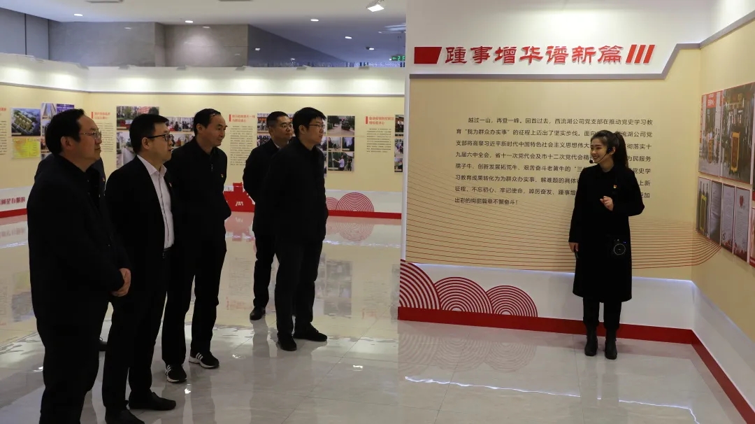 第二站,指導(dǎo)組一行參觀了金岱科創(chuàng)城商務(wù)服務(wù)中心,詳細(xì)了解了金岱科創(chuàng)城核心板塊、商代王城遺址核心板塊及小李莊火車(chē)站核心板塊的規(guī)劃建設(shè)情況。隨后實(shí)地觀摩了西流湖公司黨支部黨史學(xué)習(xí)教育“我為群眾辦實(shí)事”主題展,對(duì)西流湖公司黨支部助推金岱迭代升級(jí)、全力打通“斷頭路”、打造精品安置房、積極投身防汛搶險(xiǎn)疫情防控一線等踐行“八心”服務(wù)、為群眾辦實(shí)事好事的一系列工作舉措給予了高度評(píng)價(jià)和充分肯定。