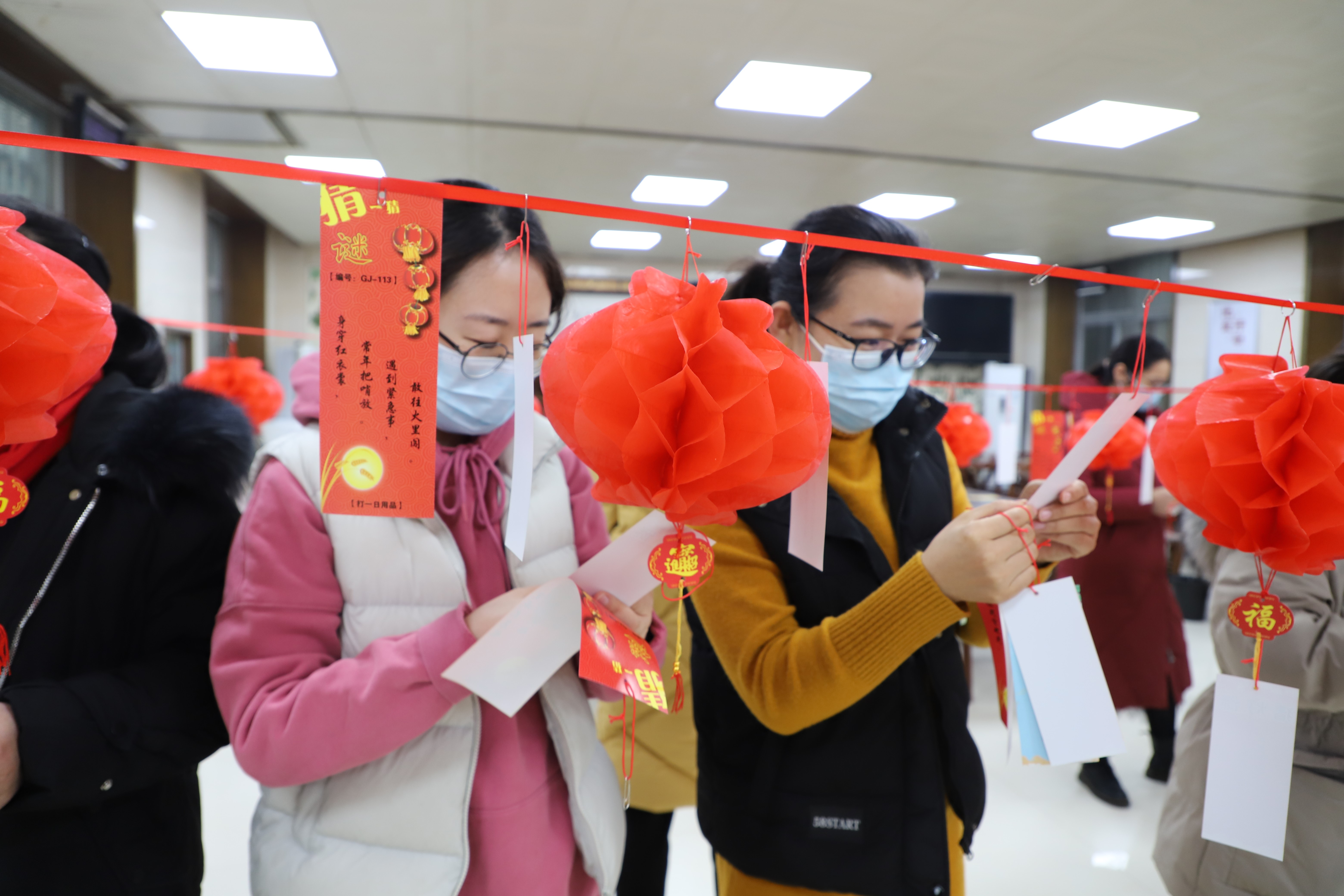 食堂內(nèi)部,工作人員在充分做好防疫工作的基礎(chǔ)上,提前將二百余條顏色不一的謎語條高高掛起。謎語有猜成語的,有猜動物花鳥的,有猜歇后語的,有猜日常用品的,生動而活潑、面廣而量大。在益智填趣、娛樂生活的同時,更以這種傳統(tǒng)高雅的文藝形式展示了一方水土歷史、人文、民俗之特色與魅力,集趣味性、知識性于一體,讓大家樂中有學(xué),共同領(lǐng)略祖國語言的無窮奧妙。活動現(xiàn)場,還為大家精心準備了春節(jié)相關(guān)的禮品,極大激起了參與職工的興趣。
